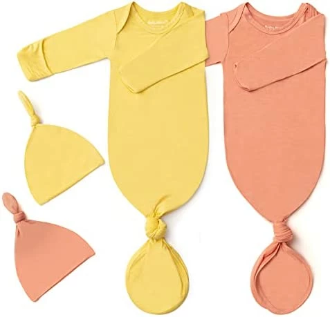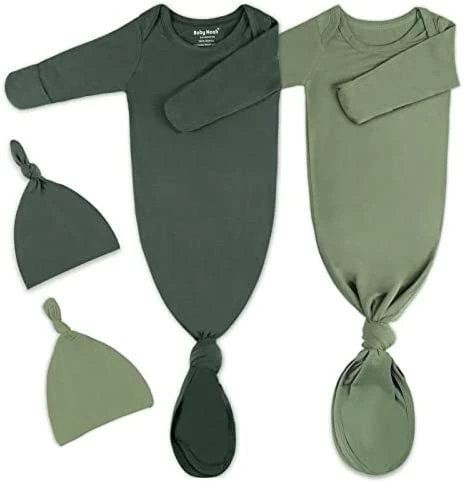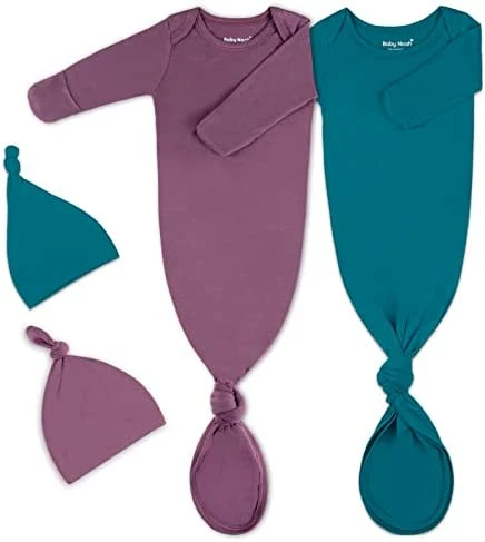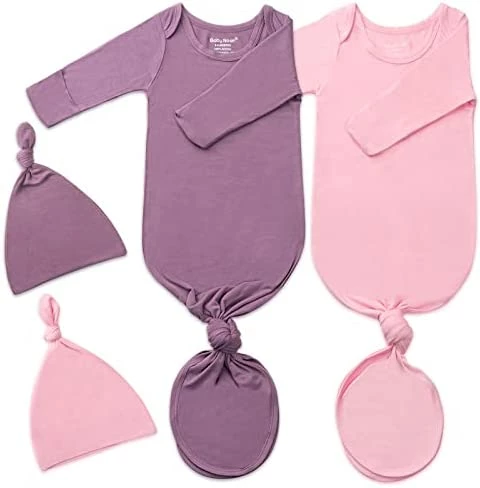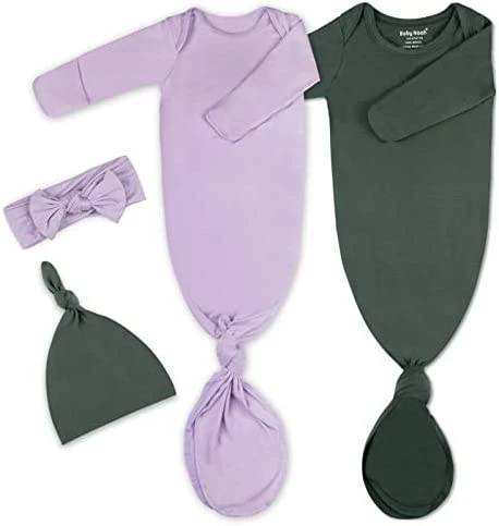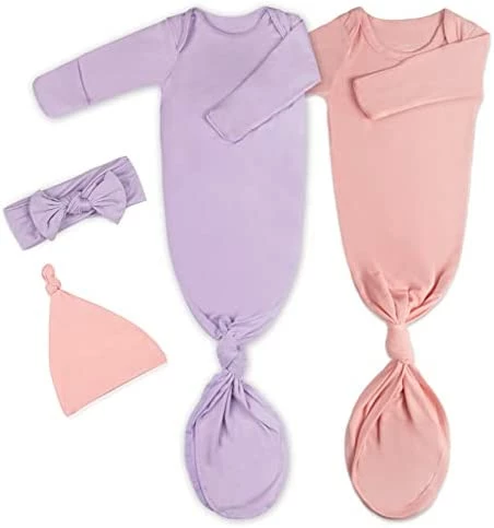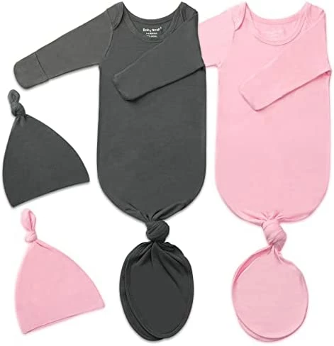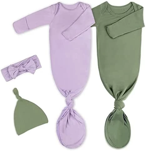 - โฟTHE PERFECT COMING HOME OUTFIT:ย Our long sleeve knotted gown looks great on photo.ย Comes with hat or headband to complete the look.ย Headband are pre-tie. It keeps their hand and belly cozy, and the extra long design makes tying easy, and grows with baby.ย Great baby shower gift as hospital outfit for newborns.