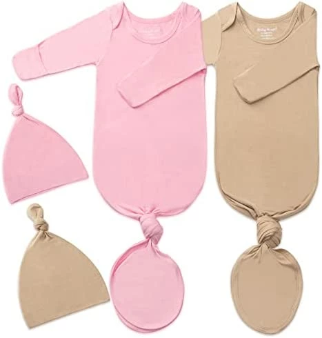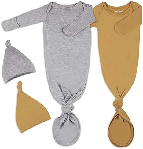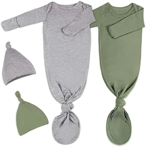 8 reviews for Coupon ๐ 2Pk Newborn Baby Knotted Gown, Super Soft Silky Infant Long Sleeve Sleeper For Baby Sleeping With Hat Or Headband (2 Packs) Khaki+light Grey ๐งจ