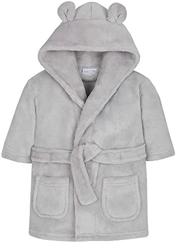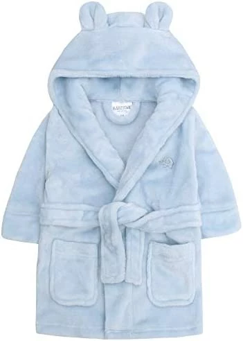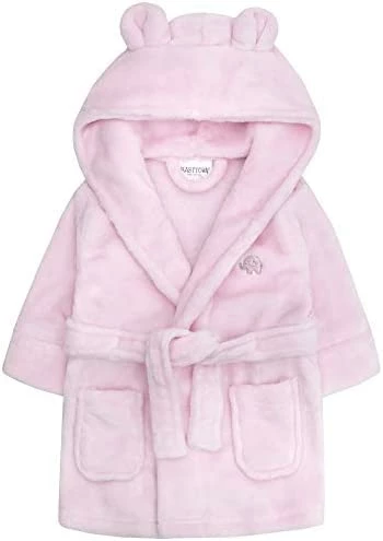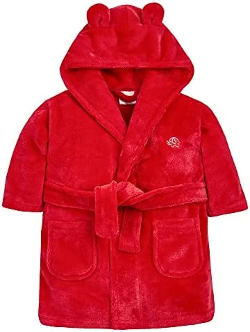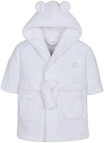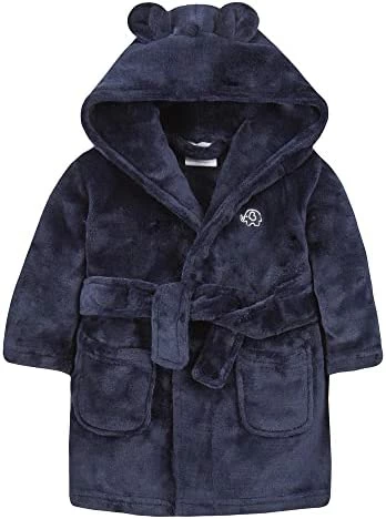 - Young childrens fleece robe from BabyTown with novelty ears on hood. Small embroidered elephant on left side. Super soft snuggly fleece. Machine washable @ 40 degrees. 100% Polyester.