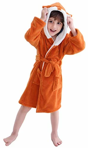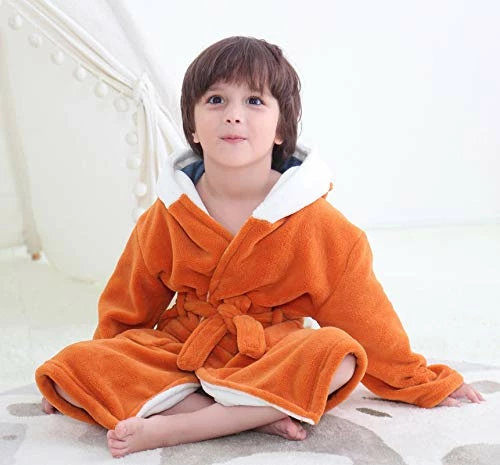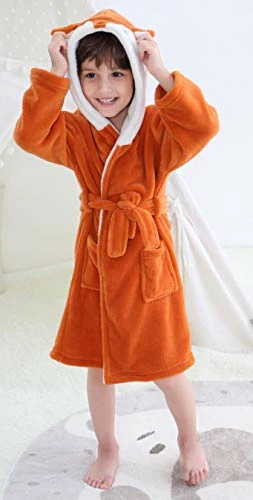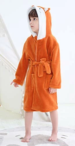 - [ANIMAL HEAD PATTERN] Easy care and soft garment with animal head is suitable for baby from 2 years to 5 years. The robe fabric is midweight, super soft and fully opaque coral fleece