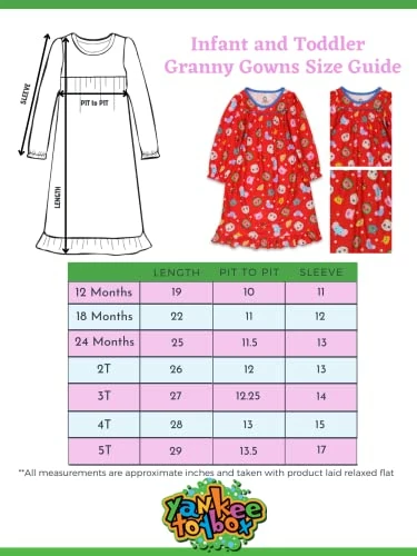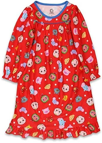 - BABY AND TODDLER GIRLS COCOMELON GRANNY NIGHTGOWN PAJAMAS – This adorable baby and toddler girl’s Cocomelon granny gown pajamas will make getting ready for bed more fun! With beautiful rich colors and awesome sublimated graphics, these nightgowns are perfect for sleeping, lounging, or for her next sleepover! Available in infant sizes 12 Months, 18 Months, and 24 Months, as well as toddler girl’s size 2T, 3T, 4T, and 5T.
