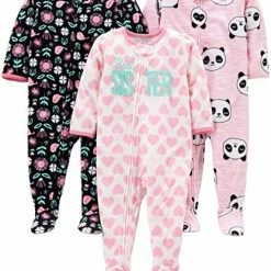 - Smooth front zipper opening makes this footed pajamas dressing and changing easy.