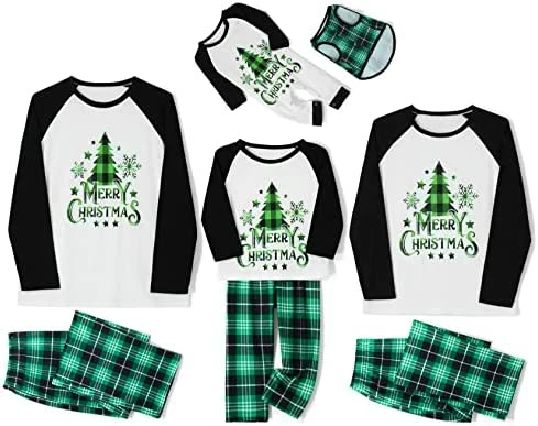 - For the Whole Family: Classic Plaid bottoms, cute Christmas letter print, long sleeves, round neck pajama suit, Elastic waist, comfortable elasticity, easy to put on and off, perfect for Christmas celebrations.