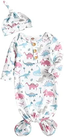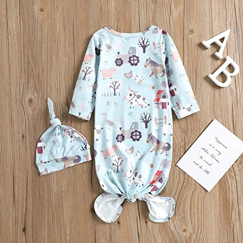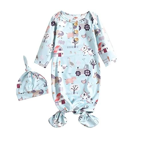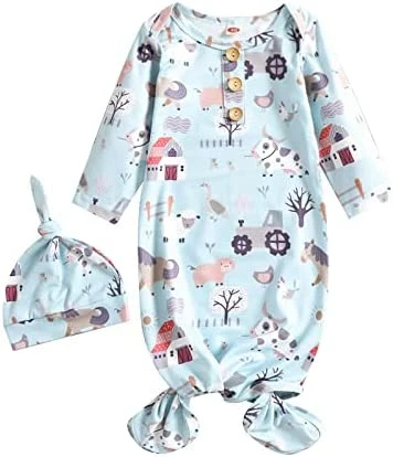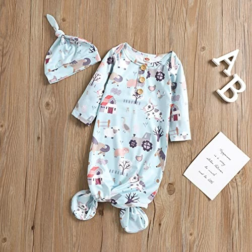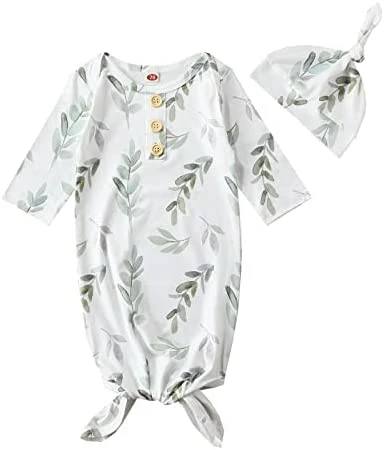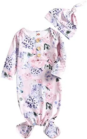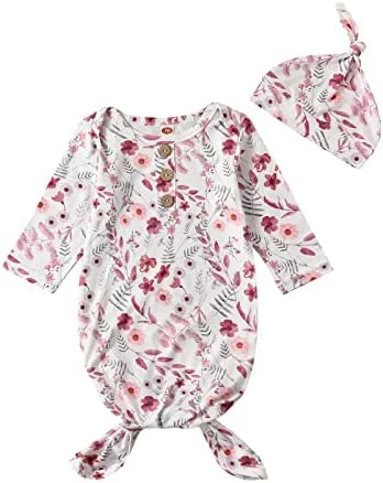- Design:Unisex Baby Newborn Organic Cotton Knot Gown & Hat Set. Infant Floral Sleeper Gowns. Size 0-3 Months. Comfortable Soft.