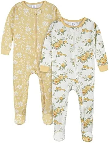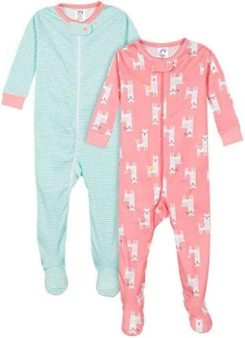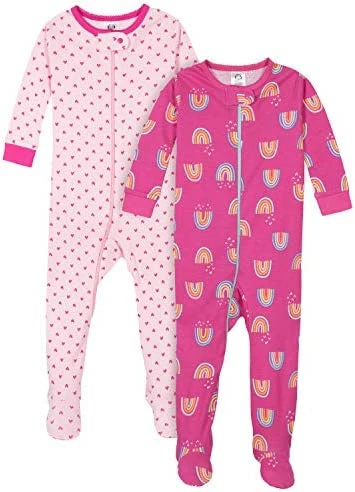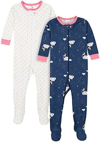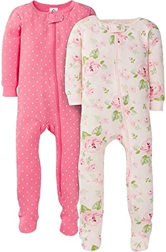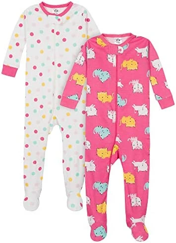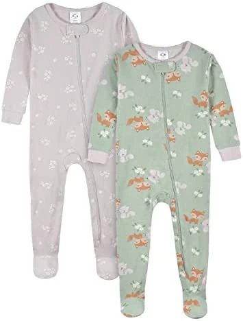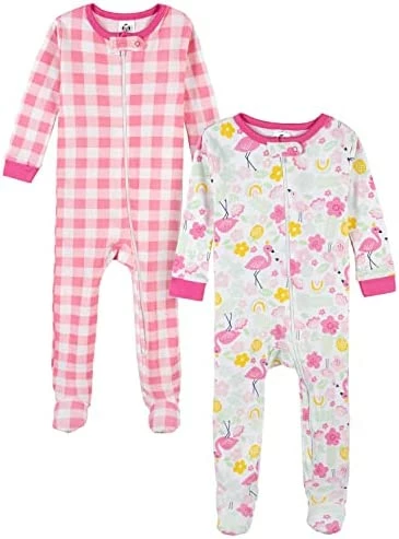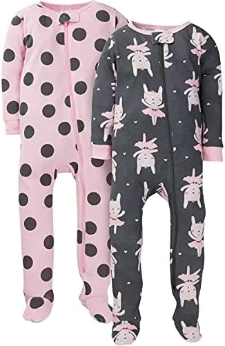 Make your bedtime routine just a little sweeter with our 2-pack snug fit footed cotton pajamas. Both pairs of baby pajamas are made with soft cotton, a comfortable and breathable fabric that’s perfect to slumber in. Our pajamas are made with a snug fit to ensure a safe night’s sleep. These baby and toddler pajamas are perfect to accommodate cool weather, as the footed legs add extra warmth to keep your little one’s toes warm the whole night through. The snug fit footed cotton pajamas feature front zippers, so changes are easier than ever. The zippers have safety tabs at the top to prevent baby from being poked. Give these PJ’s as a thoughtful and practical gift. Kids will love the fun patterns and designs and parents will love how easy they are to care for. Each piece in this set is machine washable and machine dryable. This set includes two pajamas.
