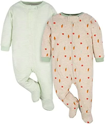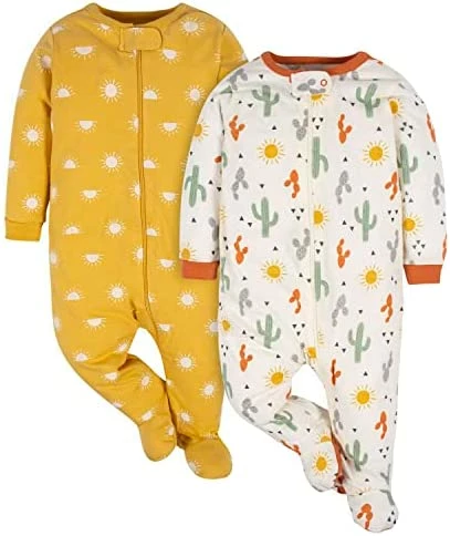Gerber Sleep ‘n Plays are the ultimate footie pajamas baby is sure to love! These soft footies are made with 100% cotton, a comfortable fabric that’s perfectly breathable to prevent irritation against baby’s delicate skin. They’re appropriate to use as newborn footie pajamas as they’re made to comply with all safe sleep standards. They’re also available in sizes all the way up to 6-9M to fit older or larger babies. Each Gerber Sleep n’ Play features a zipper down the front of the outfit to allow for easy and fast diaper changes. This zipper makes the baby sleeper incredibly easy to put on as well as to take off. Atop the zipper is a safety tab with a snap to keep the zipper held in place. This reduces irritation caused by baby’s chin being poked by the zipper. These baby sleepers are footed to add extra warmth which is wonderful for sleepy time as well as if there is a chill in the air. It also means no fooling around with baby socks! These footie pajamas kids will love to wear to bed because of their supreme comfort as well as cute and fun patterns. Available in assorted colors and patterns, they’re suitable baby girl sleepers as well as baby boy sleepers. Babies love the comfortable feel and parents love how cute they look! But these Sleep n’ Plays aren’t just for sleep! They’re wonderful comforatble, casual outfits to wear during the day. They allow babies mobility and provide warmth. They’re perfect for play but are cute enough to be worn out on the town! These outfits are perfect to wear on a stroll outside, to the grocery store, to day-care, or to grandma and grandpa’s house! The possibilities are endless! The versatility of these outfits truly gives them a spectacular value that all parents will appreciate. They make an excellent gift for any baby boy or baby girl you know and love! Gerber provides high-quality products that are easy and convenient for parents as well as cute and comfortable for baby. Gerber provides safe products that parents can trust.