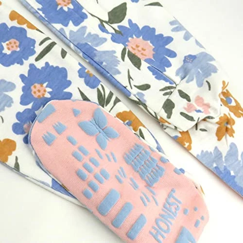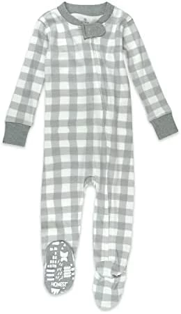 Simply adorable gray and white checked sleeper by the Honest brand. Feet have anti skid pads and material is soft. Zipper is easy and smooth to operate. Sizing is accurate.