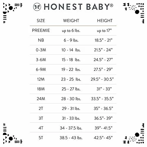 These PJs are super cute; I love the patterns! I have 2 pairs of these, and the pants fit as expected, but the arms are super tight. They leave marks on my baby, even brand new. My daughter is an average sized 18 month old, and typically wears 18-24M with room to spare, but even the 24M Honest Baby pajama arms are too tight. Thankfully, the chest area of the shirts arenโt that tight; theyโre more in line of what Iโd expect of a snug fit.