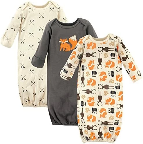 Hudson Baby cotton gowns are super comfortable and cozy and feature playful patterns for sweet dreams. An elastic band at the bottom and a lap neck make dressing and diaper changes simple.