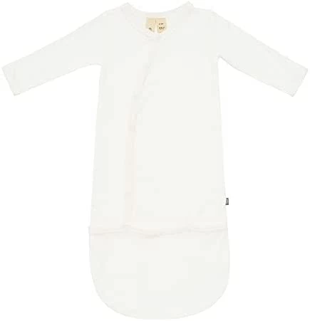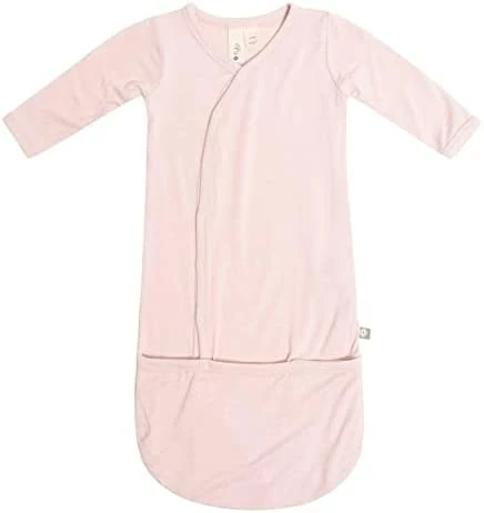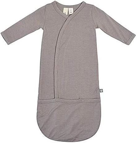 Love this gown. It for our 8lb newborn perfect and would fit a smaller baby also. Material is very soft, breathable and stretchy so I imagine itโs going to fit until baby is 10lbs or so.The buttons make it very simple to dress and undress- no pulling clothing over babyโs fragile head/neck. The best part imo is the pocket that pulls over the feet to close the bottom. No more cold feet!My only complaint would be that the fabric seems to hold milk stains and cause a little discoloration but even so, Iโd like to buy 8 more and dress baby in only these foe the first month!