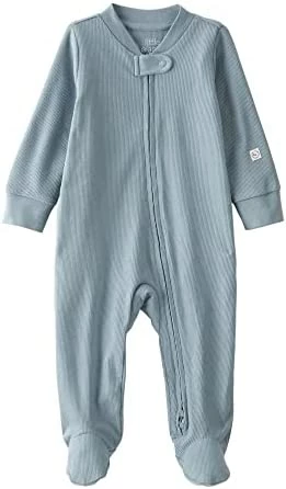 I like this sleeper , double zipper is nice . Soft and comfy. My baby is 5 months old weighs 14 12 lbs 25.6 inches I bought size 6 months and it’s a little big, room to grow. The material is on the thin side making it good for spring – with no blanket or light weight bkanlet and Fall with a blanket – thicker . Come winter however , I’ll be dressing him in something thicker .