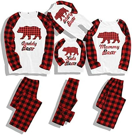 Christmas Matching Pajamas:The pattern of bear printed on tops and classic plaid pants are suitable for family,fit for women,men,kids,toddlers,infants,babies..