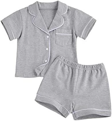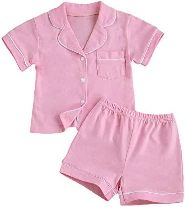 8 reviews for Best Pirce ๐ Merqwadd Toddler Baby Button-Down Pajamas Set, Cotton 2-PCS-PJs Set ๐ Shirt And Pants Sleepwear For Unisex Kids Short Sleeve-pink ๐