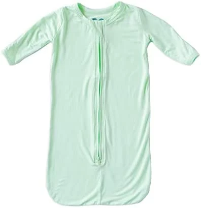 I looooove this sleep gown. It has everything I want in a baby garment from newborn to 6 months:1. An upside down zipper that’s perfect if your baby soils the gown, you can just zip them right out from the bottom, and you don’t have to fight with a double zipper. Not a fan of double zippers, they’re terrible if your baby soils the clothing.Also, unlike double/ top zippers, upside down zippers won’t dig into your baby’s neck.Bamboo soft fabric that’s perfect for summer or the heatInteresting colors that are not basicLots of room in the lower part of the bag to wiggle.This product is the best out there, and I’ve searched the internet for something similar. This is the best ?