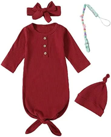 8 reviews for Deals โ MoryGooder Newborn Cotton Nightgowns Neutral Baby Knotted Sleeper Baby Coming Home Outfit Dark Red ๐งจ
