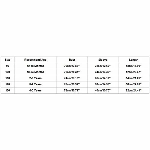 Size:130____Recommend Age:4-5 Years____Bust:78cm/30.71”________Sleeve:40cm/15.75”____Length:62cm/24.41”