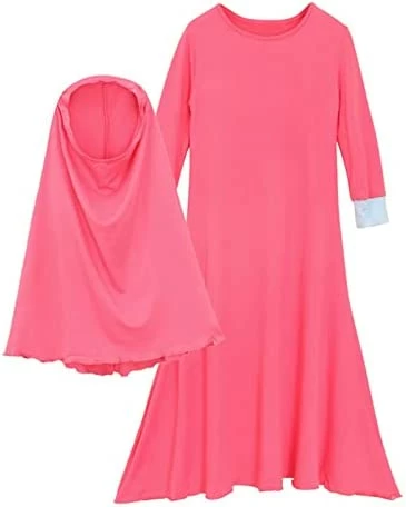 Muslim Islamic Baby Girls’ Ramadan Abaya With Hijab Full Length Robe Burka Maxi Little Baby Girls Clothes Set