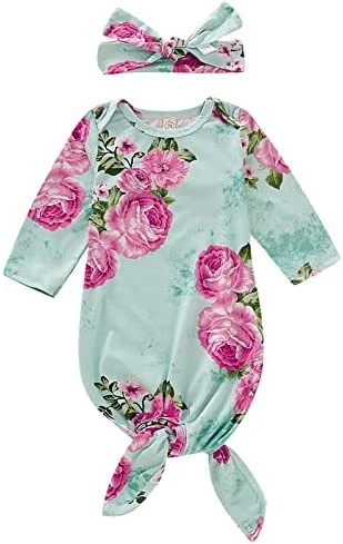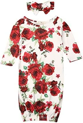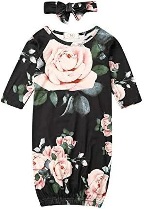 - Design: Vintage Flower Printed Sleeper Gown with Headband 2 Pcs Outfits; Makes Night Time Changes Easy with No Snaps or Zippers