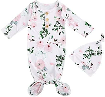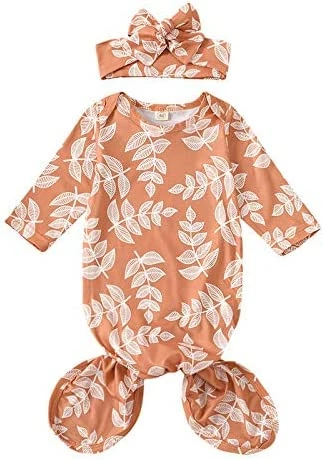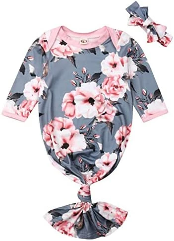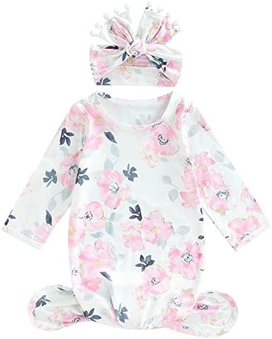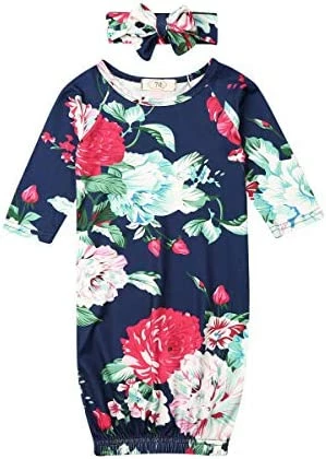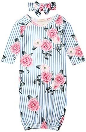 8 reviews for Best deal ๐ Newborn Infant Baby Girl Boy Floral Print Cotton Sleeper Gown With Headband Outfits X-a Beige ๐