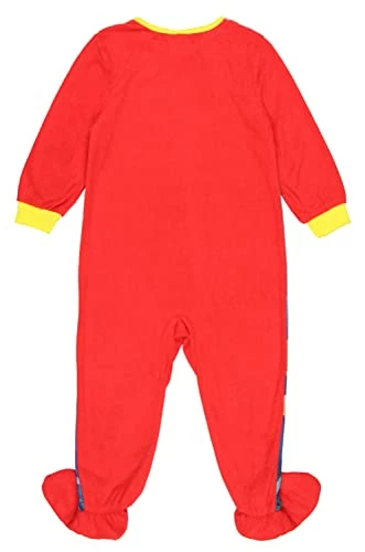 This pajama outfit is an officially licensed Paw Patrol pajama onesie! Paw Patrol is the fabulous kid’s cartoon that follows a group of dogs with real-life jobs saving the city! This one-piece footsie features a detailed graphic design of 4 heroes from the show Chase, Marshall, Rubble, and Skye with the saying Big City, Bigger Adventure. It has a full-zip foot-to-neck design. The footsies have slip-proof fabric for safe walking on floors like tile and hardwood. The pajama set is made of 100% polyester.