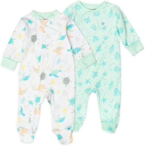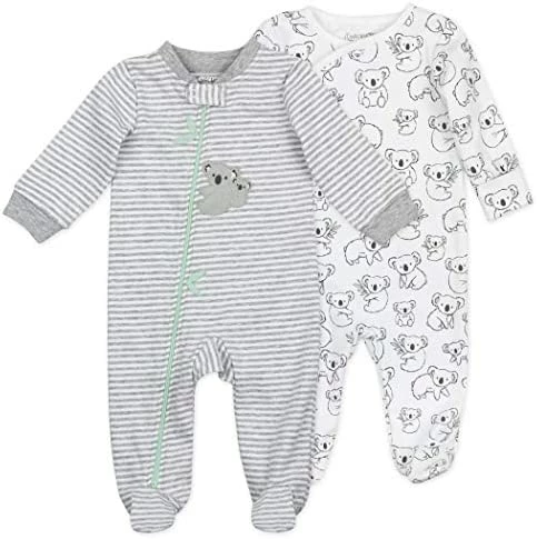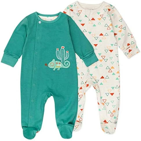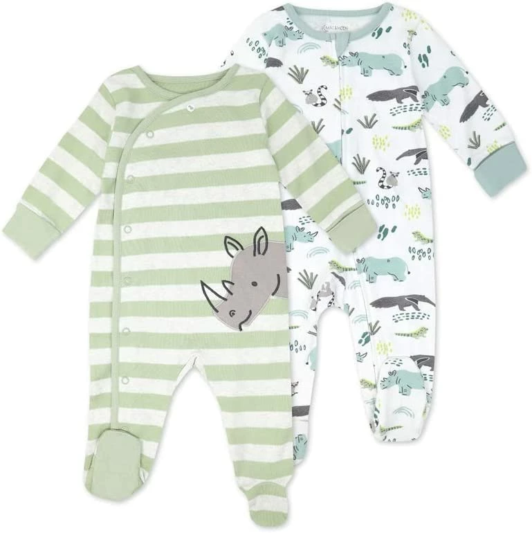 From sleep to play and everything in between, our footed sleepsuit is made from 100% organic cotton and keeps baby comfy all day long! With long sleeves, one sleeper has full open snaps and one has a zipper with a cover for easy dressing and changing. Complete with adorable dinosaur-inspired prints!