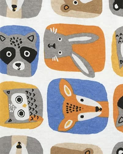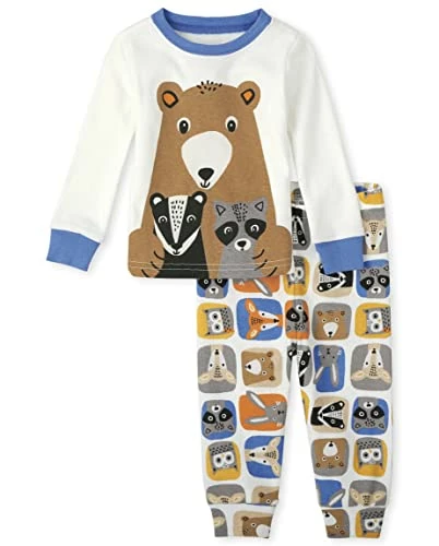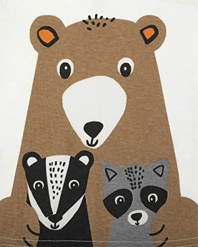 - PAJAMA TOP β Features long sleeves, rib-knit crew neck and sleeve cuffs and bear, skunk and raccoon graphic design at front