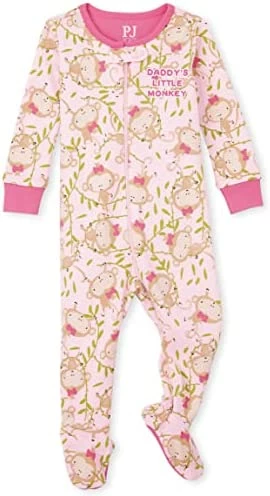 - DESIGN — Features long sleeves, rib-knit crew neck and sleeve cuffs, attached footies with elasticized back ankles and allover monkey print