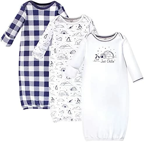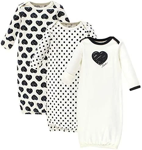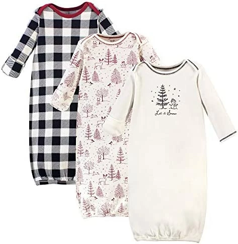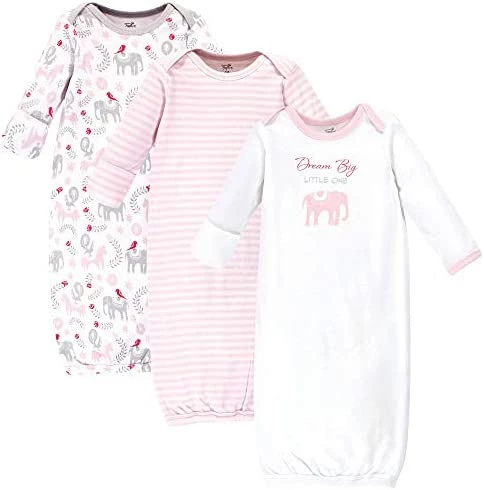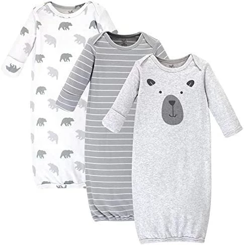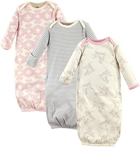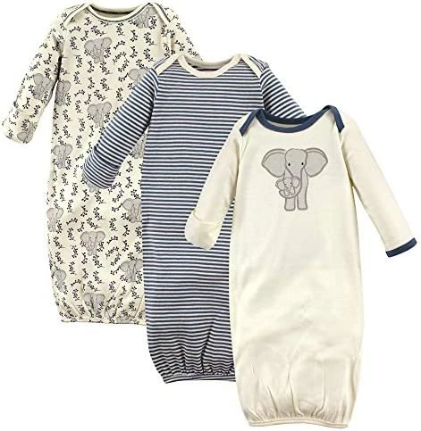 Touched by Nature organic cotton gowns feature playful patterns for sweet dreams. Our organic fabric is super-soft and gentle on baby’s skin, making sleep time cozy and comfortable. The elastic band at the bottom and a lap neck make dressing and diaper changes a breeze. Our preemie gowns are suitable for preemies and newborns from 6 to 9 pounds. Our 0-6 month gowns run a bit larger so they last until your baby turns 6 months old. Our gowns are made of 100% cotton, so some shrinking should be expected.