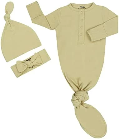 8 reviews for Promo ๐ฅ TWINOR Plain Knotted Baby Gown With Headband Hat Infant Sleeper For Baby Girl And Boy Light Green โญ