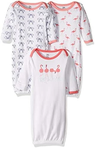 Yoga Sprout cotton gowns are super comfortable and cozy and feature playful patterns for sweet dreams. An elastic band at the bottom and a lap neck make dressing and diaper changes simple. Based on customer feedback, we would like to share size recommendations for you. Our preemie gowns are suitable for preemies and newborns from 6 to 9 pounds. Our 0-6 month gowns run a bit larger so they can last you up until your baby turns 6 months old. Our gowns are made of 100% cotton, so some shrinking should be expected.